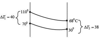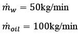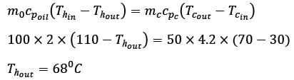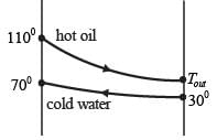 Hot oil at a temperature of 110°C is used to raise the temperature of water from 30°C to 70°C in a counter-current double-pipe heat exchanger. The flow rates for the water and oil are 50 kg min-1 and 100 kg min-1, respectively, with their specific heat capacities being and