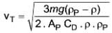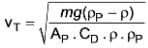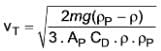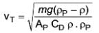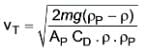 Determine the terminal velocity given that CD represents the drag coefficient and AP is the projected area of the particle.