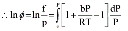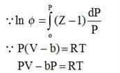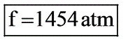 Under conditions of high temperature and pressure, nitrogen (N2) follows the equation P(V - B) = RT. Determine the fugacity (in atm) of N2 at 1000°C and 1000 atm, given that b = 39.1 ml/mol.