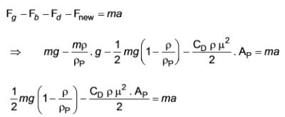 In this equation, m, ρP, and ρ denote the mass of the particle, the density of the particle, and the density of the fluid, respectively. This force acts in the upward direction.