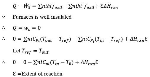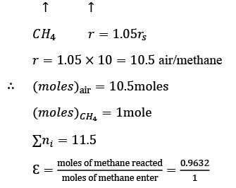 \nwhere rs represents the stoichiometric air-to-methane mole ratio. For r = 1.05rs, determine the exit flue gas temperature in °C, rounded to one decimal place, as ___________.