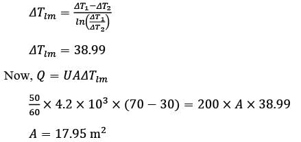 respectively. Assume that the heat exchanger operates under steady-state conditions. What is the heat transfer area in m2?
