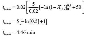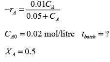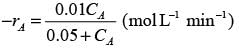 In a well-stirred batch reactor, reactant A breaks down into products B and C with the aid of an enzyme. The kinetic rate expression is represented as follows: