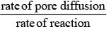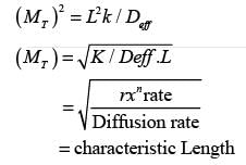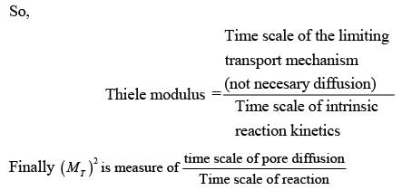 The Thiele modulus squared, MT , is expressed as where L denotes the characteristic length of the catalyst pellet, k represents the rate constant for a first-order reaction, and Deff signifies the effective diffusivity of the species within the pores. The term