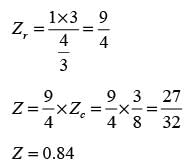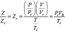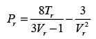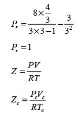 In this equation, Pr, Tr, and vr denote the reduced pressure, reduced temperature, and reduced molar volume, respectively. At the critical point, the compressibility factor (zc) is 3/8. If vr = 3 and Tr = 4/3, what is the value of the compressibility factor derived from the van der Waals equation of state? (Round your answer to two decimal places.)