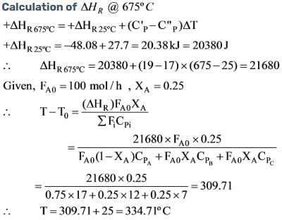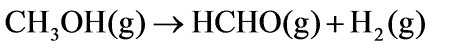 Methanol is introduced into an adiabatic reactor at 675oC and 1 bar, at a flow rate of 100 mol/h, where 25% of it undergoes dehydrogenation to produce formaldehyde according to the reaction shown below.