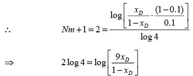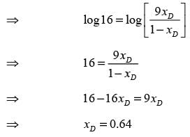 A distillation column processing a binary mixture of components A and B is functioning at total reflux with two ideal stages, including the reboiler. The mole fraction of the more volatile component in the residue (xW) is 0.1. The average relative volatility αAB is 4. What is the mole fraction of A in the distillate (xD)? (round off to 2 decimal places)