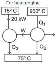 A heat pump extracts heat from a reservoir at 15º C and transfers it to a reservoir at 75º C. This heat pump is powered by a reversible heat engine that absorbs heat from a reservoir at 900º C and expels heat to a reservoir at 75º C. Additionally, the heat engine operates a machine that consumes 30 kW. If the heat pump draws 20 kJ/s from the 15º C reservoir, what is the rate of heat supply from the 900º C source?
