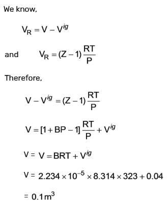 Calculate the volume Z = 1 [in m3] of 1 mole of a real gas, given that the volume of 1 mole of the gas is 0.04 m3 when it behaves ideally. The temperature is provided as 50º C.