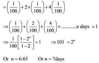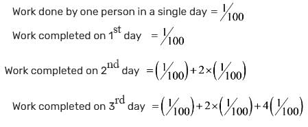 A certain group of individuals is capable of finishing a specific task in 100 days if they work alone. On the first day, one individual works; on the second day, two additional individuals join; on the third day, four more individuals join; and this pattern continues until the task is completed. How many days will it take to finish the task?
