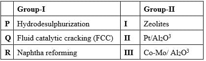 Examine the refining processes presented in Group-I alongside the catalysts outlined in Group-II.