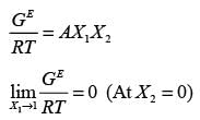 In a binary liquid mixture, the mole fraction of component 1 is denoted as x1, and its activity coefficient is represented by γ1. The excess molar Gibbs energy of the mixture is indicated as GE, while R stands for the universal gas constant and T represents the absolute temperature of the mixture. Which of the following statements is always correct?
