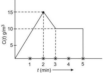 In a Continuous Stirred Tank Reactor (CSTR), the concentration of a tracer is recorded over time, as illustrated in the plot below: