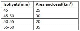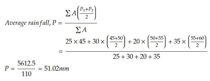 In assessing rainfall in a specific region using the isohyetal technique, the following data has been collected. Determine the average rainfall recorded (in mm, rounded to two decimal places) in the area.