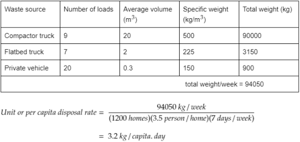 The average capacity of a compactor truck = 20m3; Specific weight = 500 kg/m3