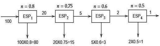 A system of four electrostatic precipitators is arranged in series, with fractional efficiencies of 80%, 75%, 60%, and 50% respectively. What is the overall efficiency (%) of the system?