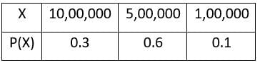 Marketing predicts that a new device for analyzing soil samples will be categorized as very successful, moderately successful, or unsuccessful, with probabilities of 0.3, 0.6, and 0.1, respectively. The anticipated annual revenue for a very successful, moderately successful, or unsuccessful product is 10,000,00, 85,000,00, and 21,00,000, respectively. What is the expected yearly revenue for this product?