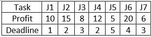 We have 7 tasks labeled J1, J2, J3, J4, J5, J6, and J7. Each task requires one unit of time to complete, and only one task can be executed at any given moment. What is the highest possible profit?
