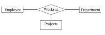 Create an E-R model based on the following premise and determine the degree of the relationship: "An Employee can be involved in multiple departments and various projects."