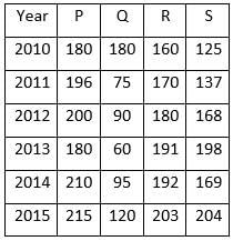 The table below presents data regarding the production of various types of two-wheelers by a company from 2010 to 2015. In which year did the average production of two-wheelers reach its peak?