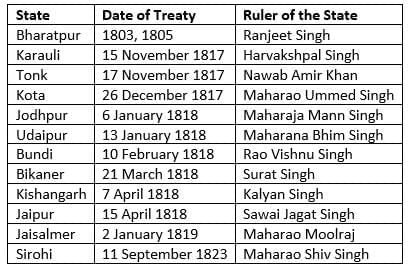 Which Raja of Bharatpur was the first to make a subsidiary treaty with the British in Rajasthan?