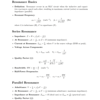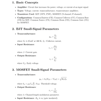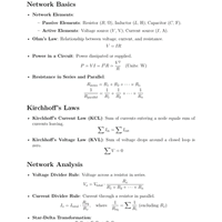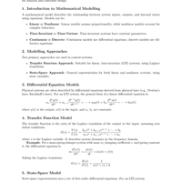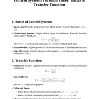 Formula Sheets: Basics of Control System & Transfer Function