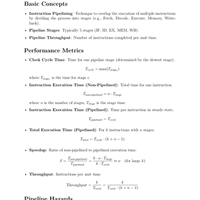 Formula sheet: Instruction Pipelining