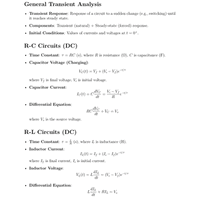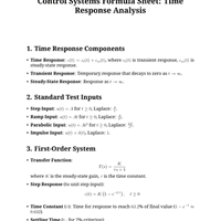 Formula Sheets: Time Response Analysis