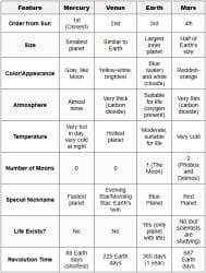| Mercury, Venus, Earth, and Mars: Planet Facts 6 pages |  |