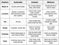 | Difference Between Asteroids, Comets, and Meteors 6 pages |  |