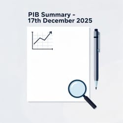 Revision notes for PIB (Press Information Bureau) Summary 2026 is part of UPSC CSE exam preparation. The notes have been prepared according to the UPSC CSE exam syllabus. The revision notes, tests & MCQs are made for UPSC CSE 2026 Exam. Find important definitions, questions, notes, meanings, examples, exercises, MCQs and online tests here.
