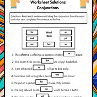 | Printable Worksheet Solutions: Conjunctions 1 page |  |