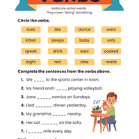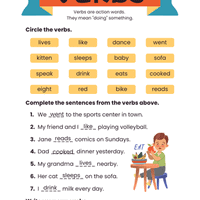 | Printable Worksheet Solutions: Verbs 1 page |  |