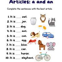 | Printable Worksheet Solutions: Articles 1 page |  |