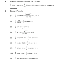 | Important Formulas: Integration by Reduction Formula 4 pages |  |