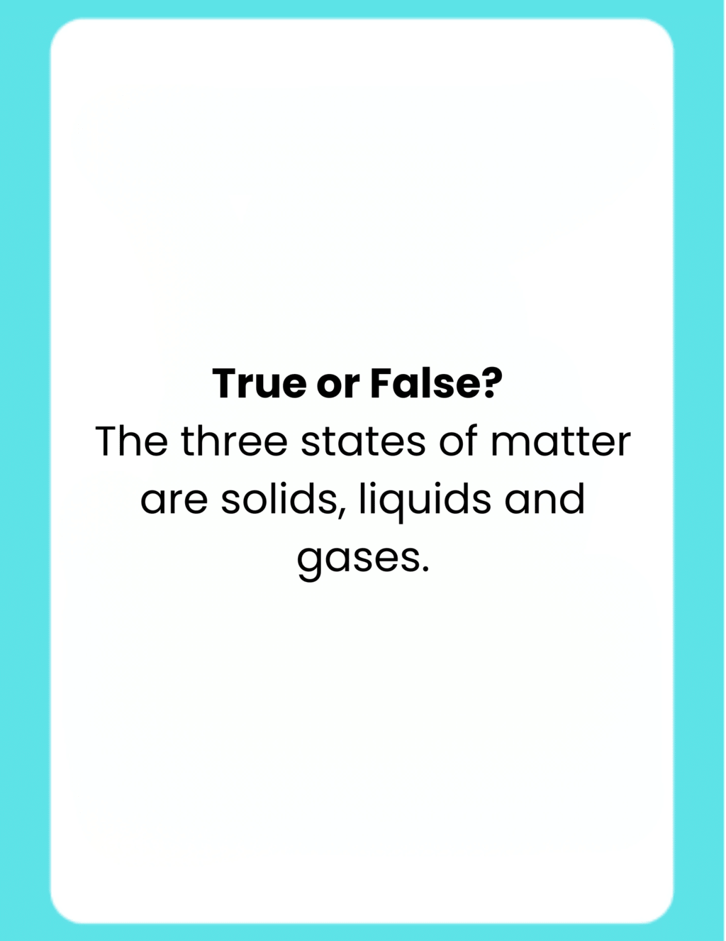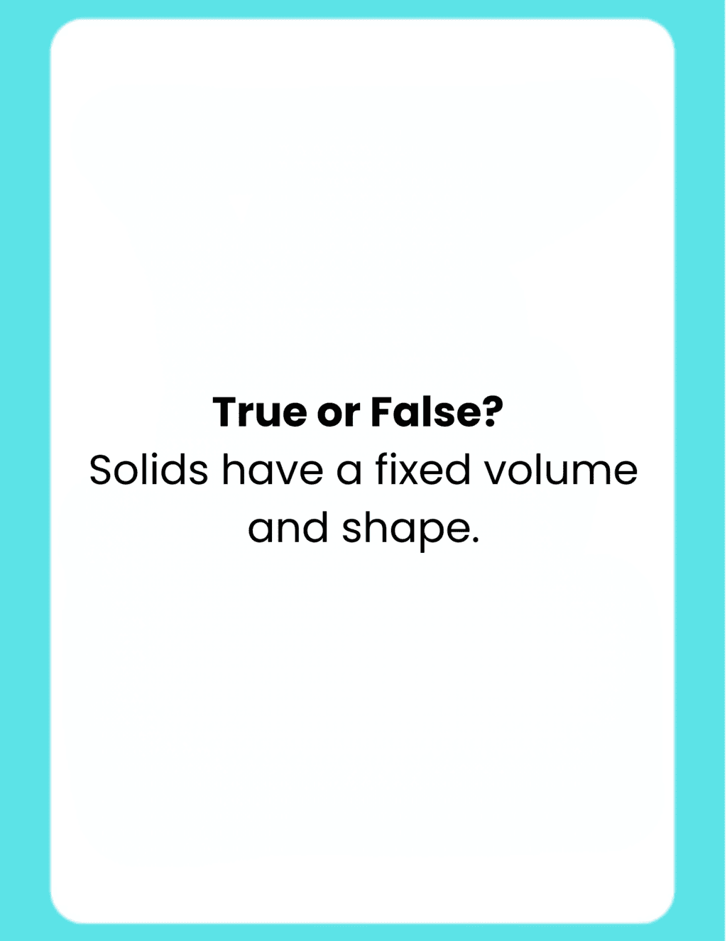 Students of Class 4 can study Flashcards: Solids, Liquids and Gases alongwith tests & analysis from the EduRev app, which will help them while preparing for their exam. Apart from the Flashcards: Solids, Liquids and Gases, students can also utilize the EduRev App for other study materials such as previous year question papers, syllabus, important questions, etc. The EduRev App will make your learning easier as you can access it from anywhere you want. The content of Flashcards: Solids, Liquids and Gases is prepared as per the latest Class 4 syllabus.