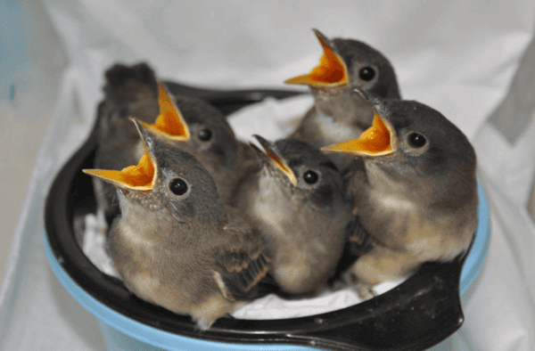 A storm caused the tall tree with their nest to fall, leading to the death of the mother bird and the scattering of the baby birds. |