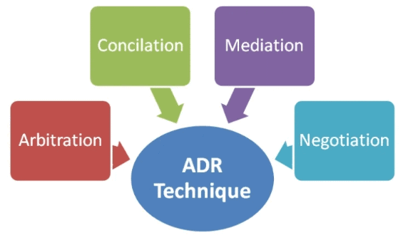 ADR stands for Alternative Dispute Resolution, and its primary purpose is to provide a system that offers alternatives to traditional court methods for resolving disputes through non-adversarial techniques. | Card: 10 / 32 |