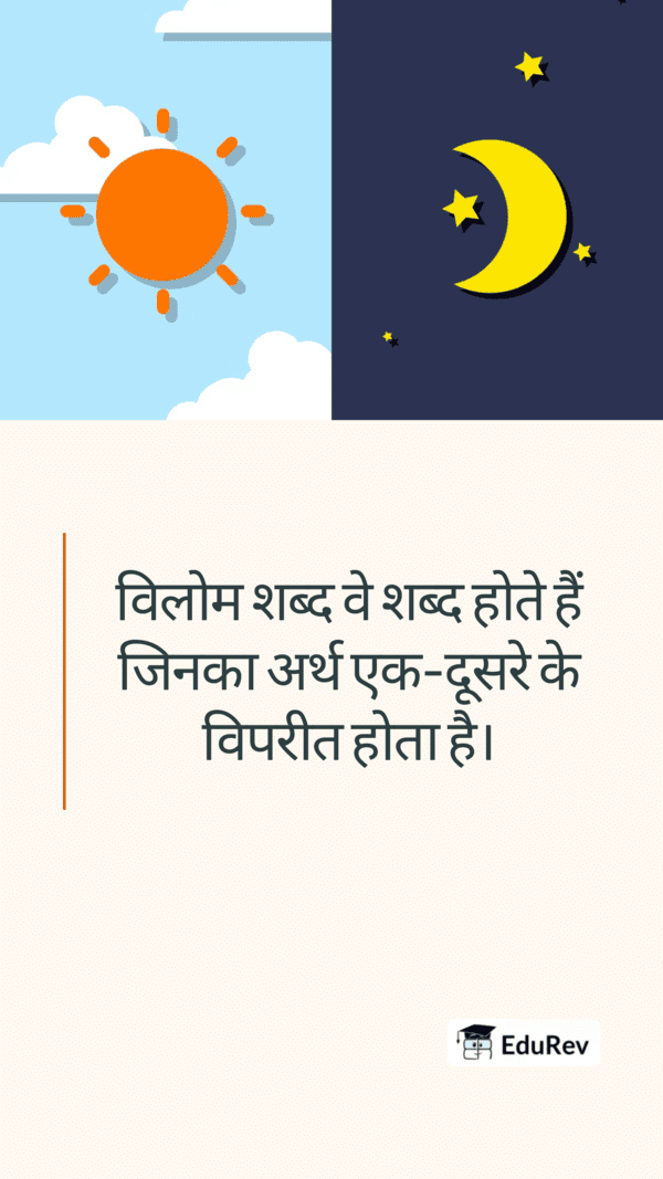 Ans. विलोम शब्द वे शब्द हैं जिनका अर्थ एक-दूसरे के विपरीत होता है, जैसे 'गर्मी' और 'ठंड'। ये शब्द हिंदी भाषा में शब्दावली को समृद्ध करने में मदद करते हैं।