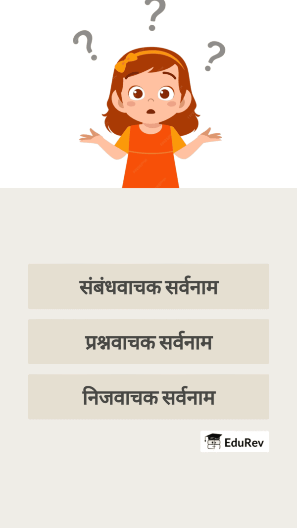 Students of Class 9 can study Flashcards: सर्वनाम alongwith tests & analysis from the EduRev app, which will help them while preparing for their exam. Apart from the Flashcards: सर्वनाम, students can also utilize the EduRev App for other study materials such as previous year question papers, syllabus, important questions, etc. The EduRev App will make your learning easier as you can access it from anywhere you want. The content of Flashcards: सर्वनाम is prepared as per the latest Class 9 syllabus.