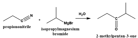 What is produced when a nitrile is treated with a Grignard reagent followed by hydrolysis? |