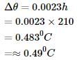 Water falls from a height of 210 m. Assuming whole of energy due to fall is converted into heat the rise in temperature of water would be (J = 4.3 Joule/cal)