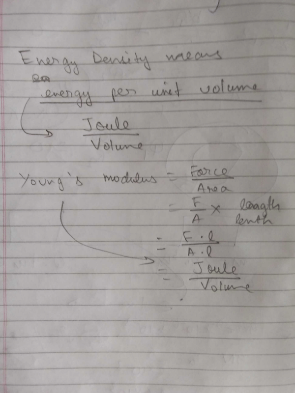 - Energy density and Young's modulus both share the dimensions of ML⁻¹T⁻².