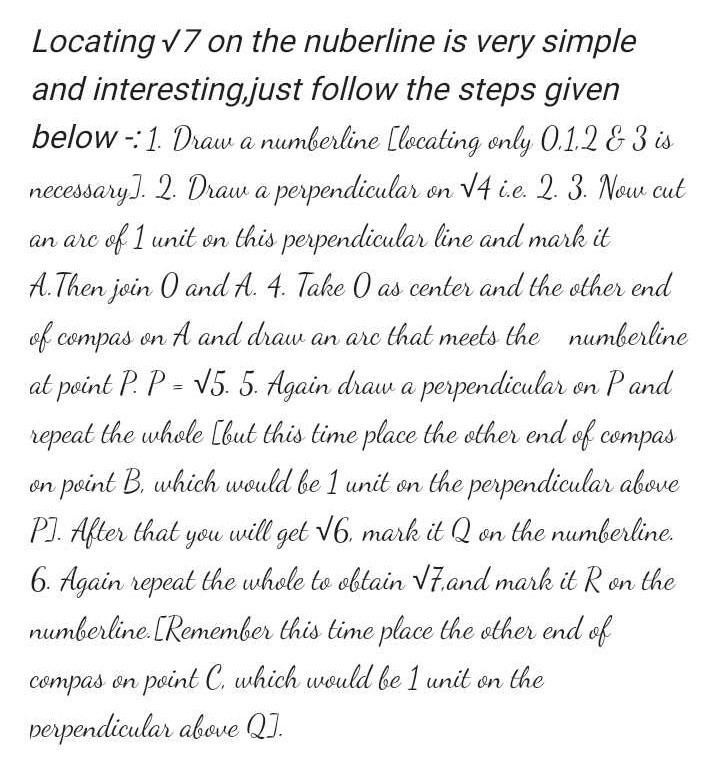 To represent the square root of 7 on a number line, we first need to understand what the square root represents. The square root of a number is a value that, when multiplied by itself, gives the original number. In the case of √7, we are looking for a value that, when multiplied by itself, equals 7.