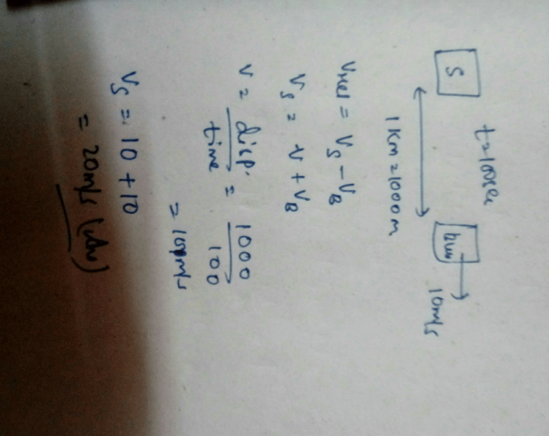 Find important definitions, questions, meanings, examples, exercises and tests below for A bus is moving with a speed of 10 ms–1 on a straight road. A scooterist wishes to overtake the bus in 100 s. If the bus is at a distance of 1 km from the scooterist, with what speed should the scooterist ch ase the bus? [2009]a)40 ms–1b)25 ms–1c)10 ms–1d)20 ms–1Correct answer is option 'D'. Can you explain this answer?.