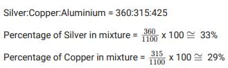 There are two alloys P and Q made up of silver, copper and aluminium. Alloy P contains 45% silver and rest aluminum. Alloy Q contains 30% silver, 35% copper and rest aluminium. Alloys P and Q are mixed in the ratio of 1 : 4 . 5. The approximate percentages of silver and copper in the newly formed alloy is:a)33% and 29%b)29% and 26%c)35% and 30%d)None of the aboveCorrect answer is option 'A'. Can you explain this answer?, a detailed solution for There are two alloys P and Q made up of silver, copper and aluminium. Alloy P contains 45% silver and rest aluminum. Alloy Q contains 30% silver, 35% copper and rest aluminium. Alloys P and Q are mixed in the ratio of 1 : 4 . 5. The approximate percentages of silver and copper in the newly formed alloy is:a)33% and 29%b)29% and 26%c)35% and 30%d)None of the aboveCorrect answer is option 'A'. Can you explain this answer? has been provided alongside types of There are two alloys P and Q made up of silver, copper and aluminium. Alloy P contains 45% silver and rest aluminum. Alloy Q contains 30% silver, 35% copper and rest aluminium. Alloys P and Q are mixed in the ratio of 1 : 4 . 5. The approximate percentages of silver and copper in the newly formed alloy is:a)33% and 29%b)29% and 26%c)35% and 30%d)None of the aboveCorrect answer is option 'A'. Can you explain this answer? theory, EduRev gives you an