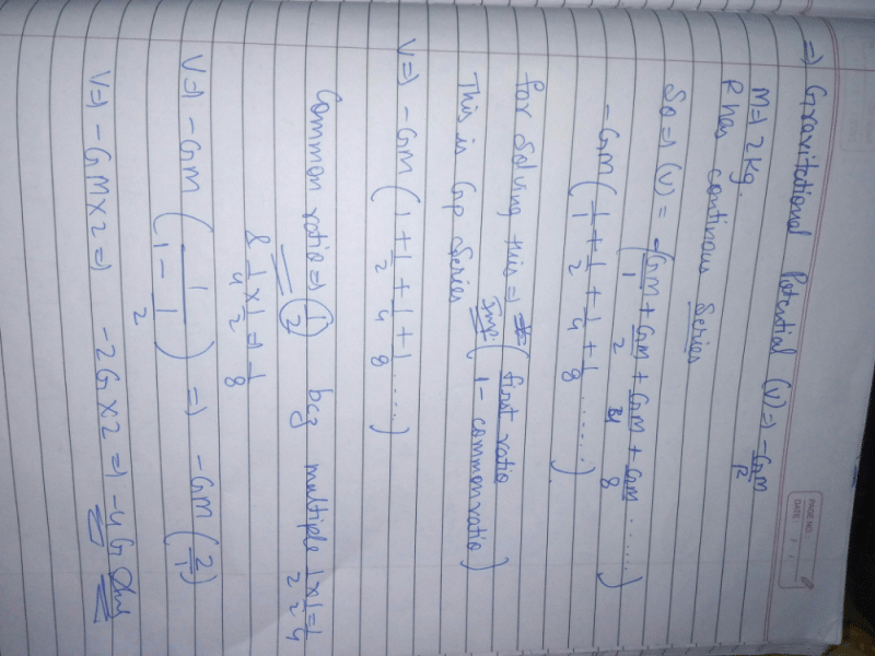 Find important definitions, questions, meanings, examples, exercises and tests below for Infinite number of bodies, each of mass 2 kg are situated on x-axis at distances 1m, 2m, 4m, 8m, ..... respectively, from the origin. The resulting gravitational potential due to this system at the origin will be [NEET 2013]a)b)c)– 4 Gd)– GCorrect answer is option 'C'. Can you explain this answer?.