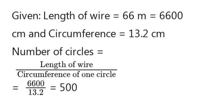 Given: Length of wire = 66 m = 6600 cm and Circumference = 13.2 cm