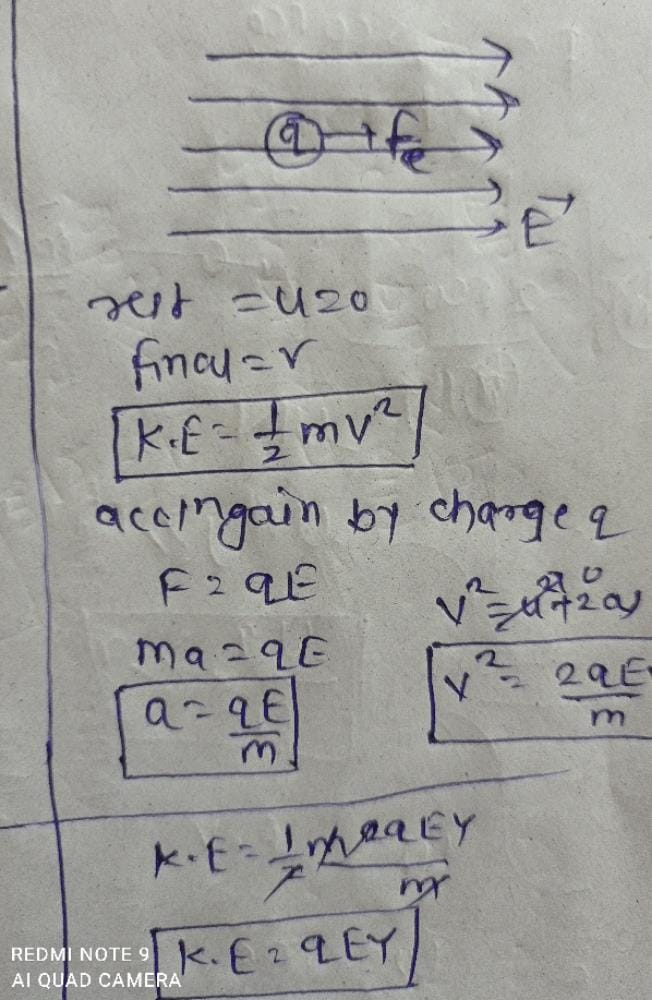 where K is the kinetic energy gained by the particle.