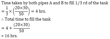 Find important definitions, questions, meanings, examples, exercises and tests below for Two pipes A and B can fill a tank in 20 and 30 hrs. respectively. Both the pipes are opened to fill the tank but when the tank is 1/3 rd full, a leak develops in the tank through which one-third water supplied by both the pipes goes out & after it the leak was get closed by some means. The total time taken to fill the tank isa)12 hrb)16 hrc)14 hrd)18 hre)20 hr.Correct answer is option 'B'. Can you explain this answer?.